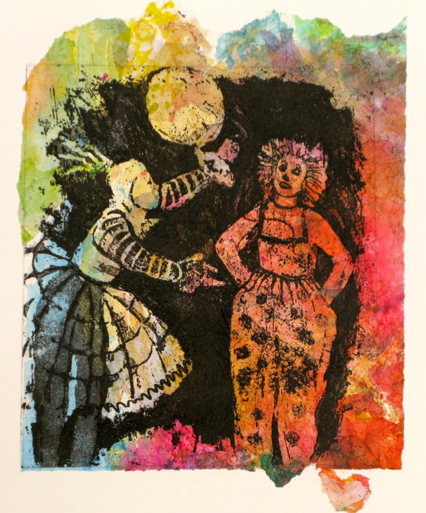 Amelia Silkscreen and Tap Dancer Silkscreen The Watcher Collagraph and Guardian Angel Collagraph
